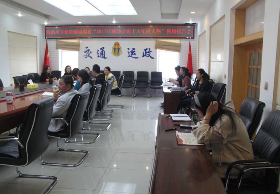为学习身边的先进典型,营造“崇尚先进、比学赶超、力争上游”的干事创业氛围,5月16日,海西州交通运输局组织干部职工观看了“2017年感动交通十大年度人物”视频报告会。